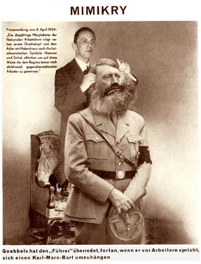 Kalle: Werdens nicht schwach, das ist der Fehler bei allen Demokratien. Sie können nicht bestreiten, dass Deutschland absolut demokratisch ausgeschaut hat, bis es faschistisch ausgeschaut hat. Dem Gastwirt Ebert haben die besiegten Generäle eine eigene lange Leitung ins Große Hauptquartier bewilligt, damit er hat telephonieren können, wenn das Volk unruhig geworden ist. Die Ministerialräte und die hohen Richter haben mit ihm konferiert, als obs das Natürlichste von der Welt war, und wenn sich ab und zu einer die Nase zugehalten hat, ist das nur ein schlagender Beweis gewesen, dass sie nicht mehr hingehen konnten, wo sie wollten, sondern zum Gastwirt Ebert haben gehen müssen, sonst wars aus mit den Posten und Pensionen. Ich hab gehört, dass einer von den Ruhrindustriellen, ein bekannter Alldeutscher, sich einmal zu sträuben gewagt hat. Da hat der Gastwirt ihn höflich aber bestimmt gebeten, sich auf einen Stuhl zu setzen, und dann hat er sich von zwei Sozialdemokraten hochheben lassen und hat dem Industriellen den Fuß auf den Nacken gesetzt. Die Herren haben eingesehen, dass sie eine Volksbewegung hinter sich brauchen, sonst gehts nicht. Ein paar geschickte Operationen haben da zum Ziel geführt! Zuerst haben sie durch die Inflation den Mittelstand geschröpft, dass er ruiniert war. Die Bauern sind durch Tarif- und Zollpolitik zugunsten der ostelbischen Junker ruiniert worden. Von den ausländischen Banken haben sich die Herrn Milliarden gepumpt und ihre Fabriken so durchrationalisiert, dass sie mit viel weniger Arbeitern ausgekommen sind, und so ist ein großer Teil der Arbeiterschaft in eine Bettelschaft verwandelt worden. Aus den ruinierten Mittelständlern, Bauern und Arbeitern haben sie dann die nationalsozialistische Volksbewegung gebildet, mit der sie bequem einen neuen Weltkrieg anzetteln haben können. Alles ist gegangen, ohne dass die innere Ordnung gestört worden ist. Sie ist garantiert worden durch die neue Armee von bezahlten Soldaten, die ihnen die Alliierten von Anfang an gegen den inneren Feind erlaubt haben. Aus "Flüchtlingsgespräche" von Bertolt Brecht (1940-41)